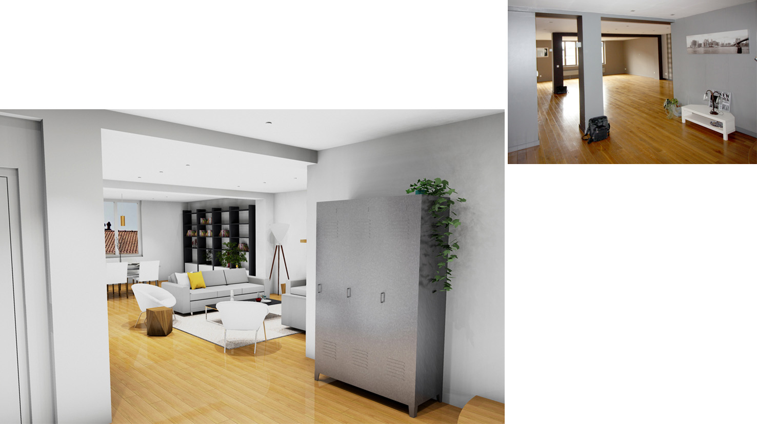 Une agence immobilière nous a contactés dans le but de les aider à mettre en valeur leur bien à vendre. En effet, le bien est un très grand loft, plutôt sombre. L’une des chambres est trop étroite et l’aménagement de l’immense séjour est difficile à imaginer. Pour un budget minimal, nous avons redimensionné la chambre afin qu’elle soit agréable, avec de nombreux rangements et l’accès ne s’y fait plus depuis le salon mais depuis l’entrée, à l’abri des regards. Coté décoration, seule la peinture a été changée dans le but d’éclaircir la pièce au maximum que nous avons ensuite meublée. Ainsi, le bien n’a plus d’aspect négatif et le futur acheteur peut s’y projeter sereinement.